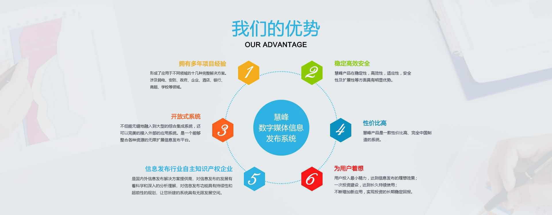 公司本着互惠互利,诚实信用的原则,真诚面对用户,并愿与社会各界展开广泛的合作。 公司现已是国内的数字媒体信息发布系统解决方案提供商,产品涉及大中型企业、商业地产、各级党政机关、军队、司法、信息通信、金融、医疗、教育、能源交通、公用事业领域。