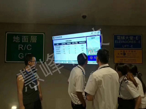 港珠澳大桥澳门口岸管理区境内停车库在地下一层到地上五层设置为开放式停车场,在车库走廊、电梯厅等重要位置总计部署了124个液晶显示屏,慧峰信息发布系统为该项目提供了质量的多媒体服务,将视频、有线电视、音频信号、PPT、FLASH、Word、Excel、图片信息和滚动字幕等各类组合的多媒体节目源通过网络传输到各显示终端,并进行无转码播放显示。该项目中,停车场区域显示内容更是与停车管理系统做了无缝对接,实时显示停车场的停车信息,为停车服务带来了便捷。