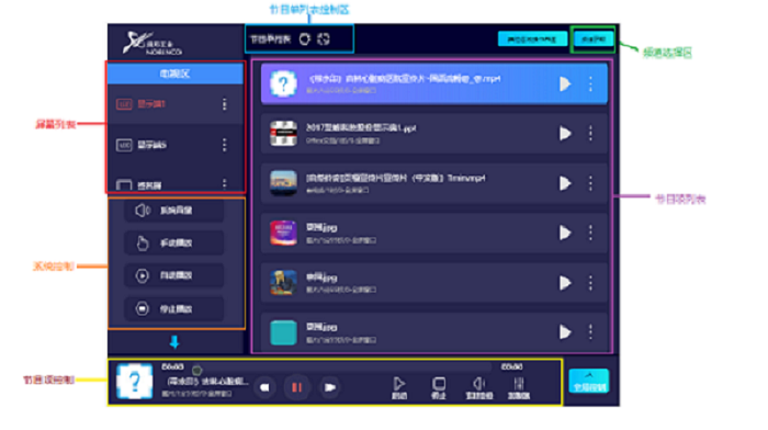 2、节目项列表区:对应屏幕节目单所有节目,点击任意节目后面的播放按钮即可播放该节目单内容到对应屏幕上。
