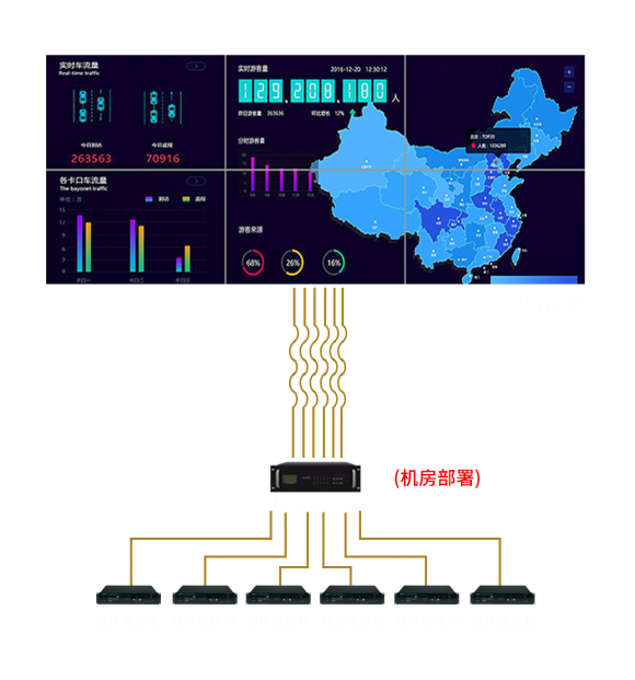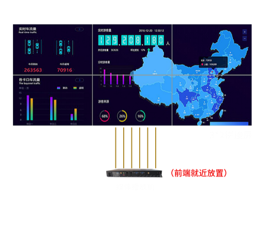 拼接屏方面,硬件只采用1台6口HDMI的高端媒体播放机就近安装,布线简单。