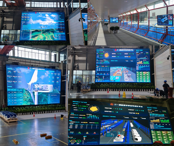 为了更好的宣传企业文化、促进生产,企业在工厂内部建设了一个“智慧工厂数字化走廊”展厅,展厅内包含大尺寸LED全彩显示屏、条形屏、拼接屏、液晶一体机屏、透明屏等超高清显示设备。