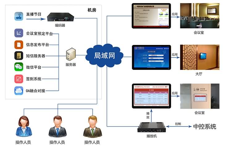 慧峰会议预约管理系统采用B/S结构,用户通过网络浏览器就可以直接使用和随时了解每个会议室的当前状态和预定情况,提高会议室的使用率,包括:用户管理、会议室管理、会议预约、会议统计与分析模块、集成中控管理模块、会议通知与显示模块等几大部分。