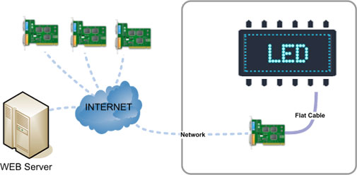 针对运用比较多的LED屏的应用,传统的方式都是单机应用,不能够进行联网的发布和管理,慧峰WiseDisplay很好的解决了以上难题,能够通过网络进行统一的发布和管理。一般真彩LED屏幕通过LED的控制器连接到LED屏幕上,而LED控制器的输入是通过DVI或VGA输入,则慧峰数字媒体发布系统的媒体播放机的输出一般有VGA和DVI输出,可以直接连接到LED的控制器上,再输出到LED屏幕上。