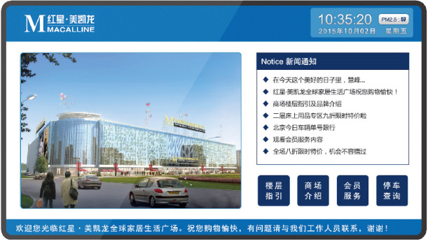 商场超市多媒体信息发布系统其应用包括液晶屏上的宣传、促销信息展示,液晶海报,3D触摸导购等。具体应用如下: