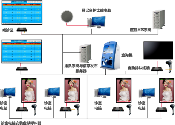 主要控制每个显示设备的显示信息如医生介绍,叫号、等待人员信息;可根据需求加配扫码或读卡器与播放机连接。